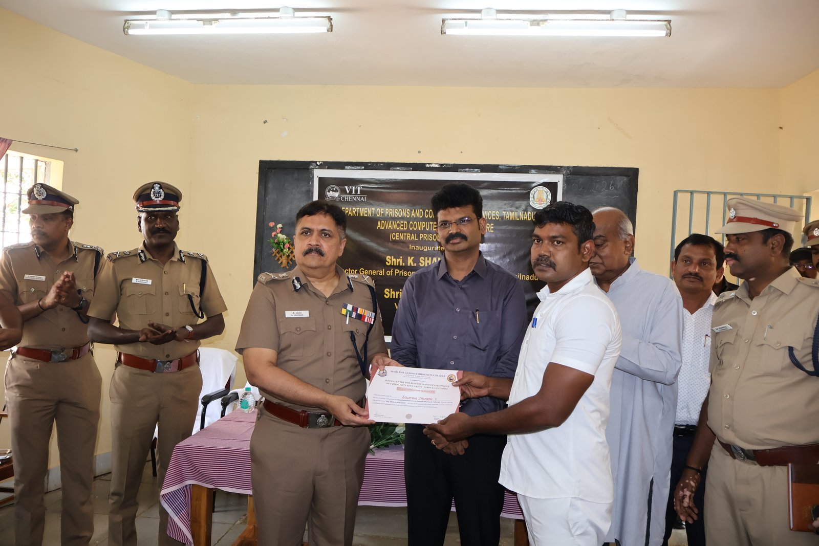 On 25.02.2026 Certificate distribution for the inmates of Mahatma Gandhi Community College – Central Prison for Men, Puzhal, Chennai in the presence of Shri. K. Shankar, IPS, DGP & IG Prisons and Dr. G.V. Selvam, Vice President, Vellore Institute of Technology (VIT) and all other Prison Officials participated and congratulated the initiative of ICRDCE for serving the most marginalized, neglected and vulnerable sections of the society.